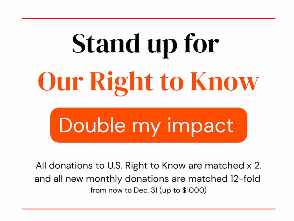 U.S. Right to Know is a 501(c)(3) nonprofit. Donations to U.S. Right to Know are tax-deductible. Our tax ID number is 46-5676616.