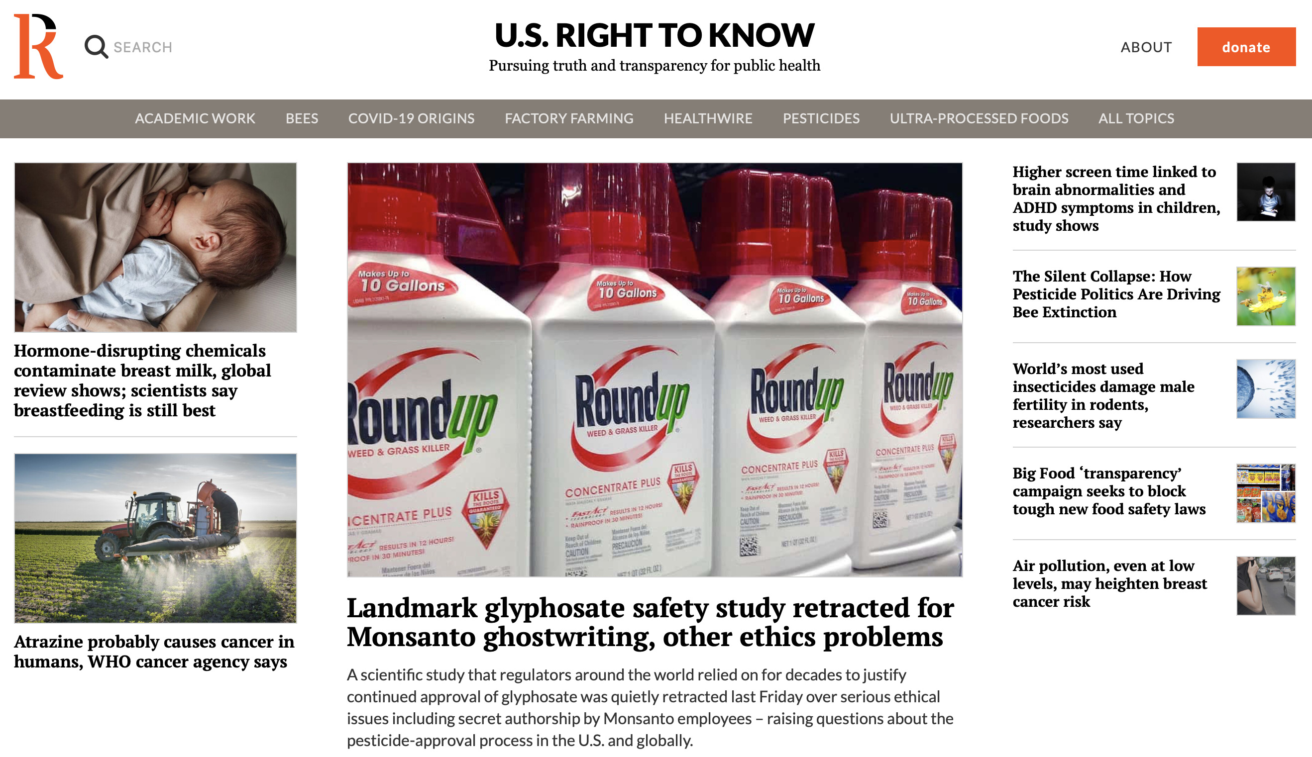 U.S. Right to Know is a 501(c)(3) nonprofit organization. Donations are tax-deductible. Our tax ID number is 46-5676616.