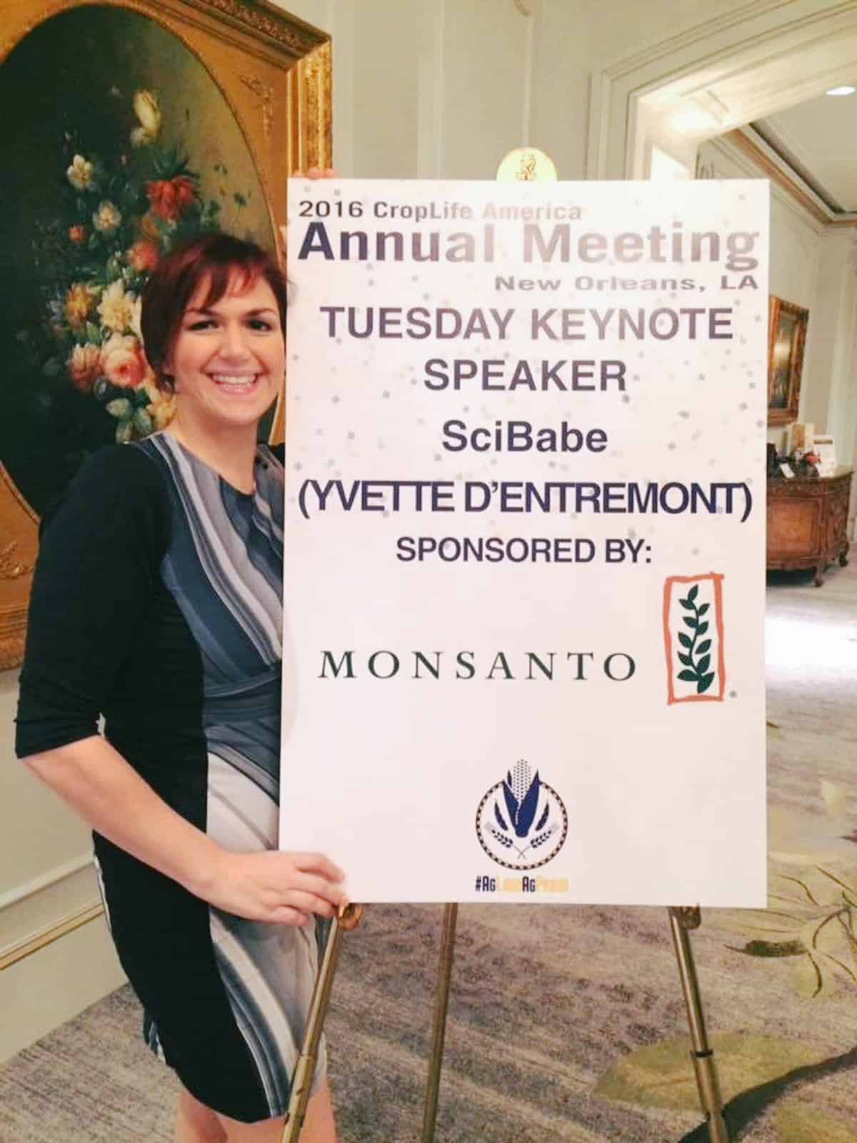 In 2017, the artificial sweetener company SPLENDA hired SciBabe to “debunk junk science” in defense of their product.SciBabe has been a featured speaker at various chemical and food industry-sponsored events such as the 2017 Atlantic Farm Women conference sponsored by CropLife and Monsanto, the 2015 Suppliers Showcase where her luncheon talk was sponsored by DuPont, and the 2016 CropLife America annual meeting where her keynote speech was sponsored by Monsanto. According to the disclosures reported for a 2017 webinar, d’Entremont served as a band consultant to the artificial sweetener company SPLENDA and she has received honoraria from, among others, Flavor Producers, Florida Dairy Farmers, CropLife, the American Soybean Association and the CA Beet Growers.